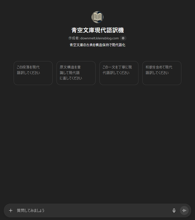 青空文庫に収録されている文学作品を、読みやすい現代語に変換して読むための カスタムGPT です。